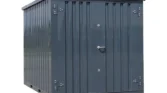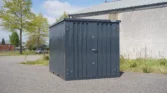 Le lastre del nostro container smontabile sono spesse il 70% rispetto alle pareti dei container per spedizioni, leggere ma comunque resistenti. Sono realizzati in acciaio zincato rivestito con vernice a polvere e sono resistenti alla ruggine e alle condizioni esterne. Inoltre, la grondaia è inclusa nella struttura del tetto e protegge il container dalle intemperie.