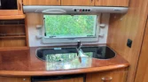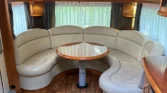 Questo è il prodotto di punta di Hobby. Passeggino spazioso e bello, con un'ampia seduta rotonda nella parte posteriore. Cucina e bagno in posizione centrale, ampia camera da letto con grande letto matrimoniale e tanto spazio per riporre gli oggetti nella parte anteriore della roulotte.
